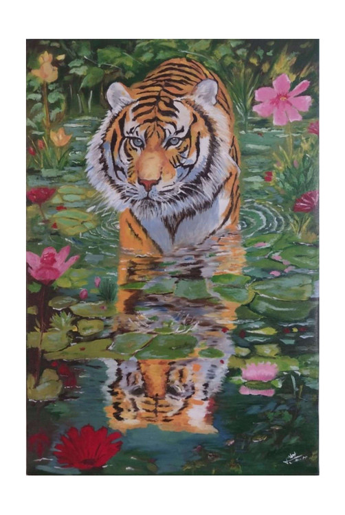 تابلو نقاشی رنگ روغن ببر بسیار زیبا و جذاب با رنگهای روح بخش زیبایی فضا را بیشتر از قبل می کند مناسب دکوراسیون منزل و کادو دادن