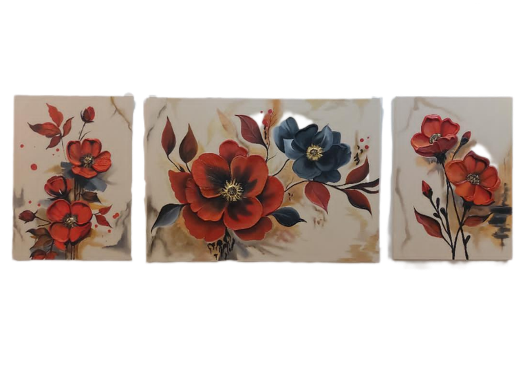 تابلوهای سه تکه امروزه بسیار مناسب برای پر کردن دیوار های بزرگ و خالی منزل شما این تابلوی زیبا با کلهای قرمز و جذاب انرژی و نشاط را برای شما به ارمغان می آورد.