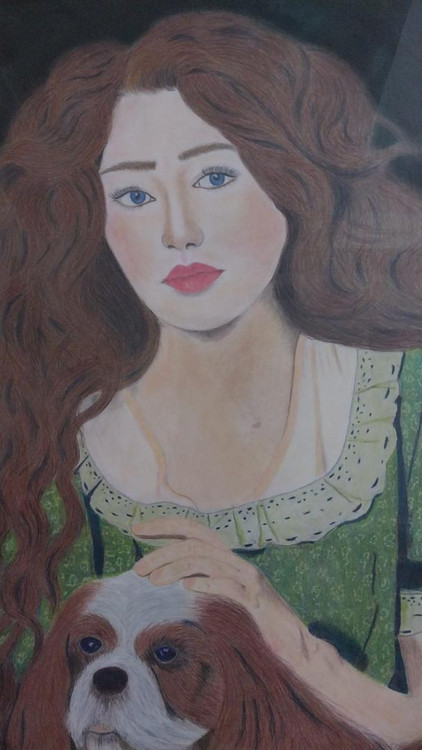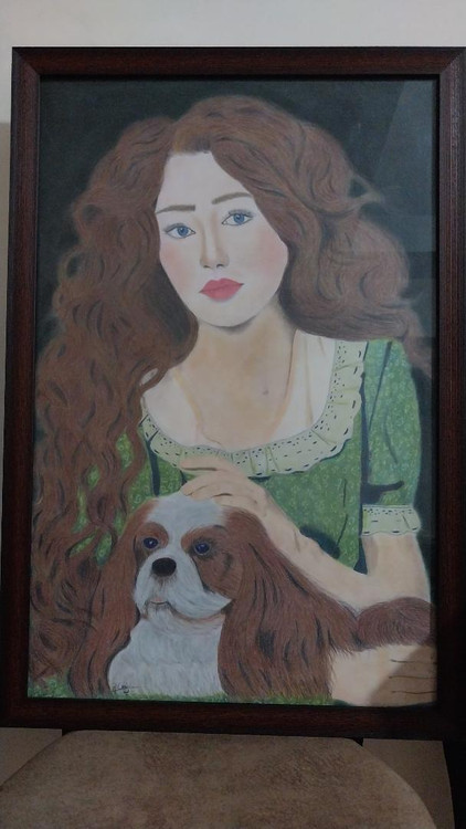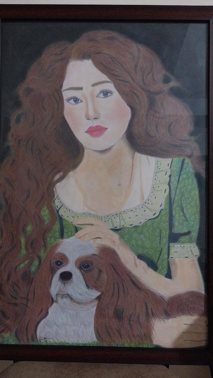 تابلوی زیبا دختر و سگ اجرا شده با مداد رنگی بسیار زیبا و مناسب کادو دادن به عزیزانمون