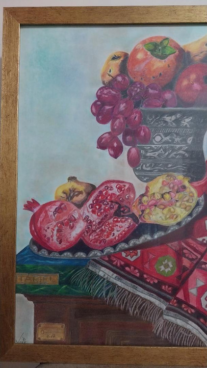 تابلوی شب یلدا اجرا شده با مداد رنگی کار دست هنرمند گرامی بسیار زیبا و مناسب کادو دادن