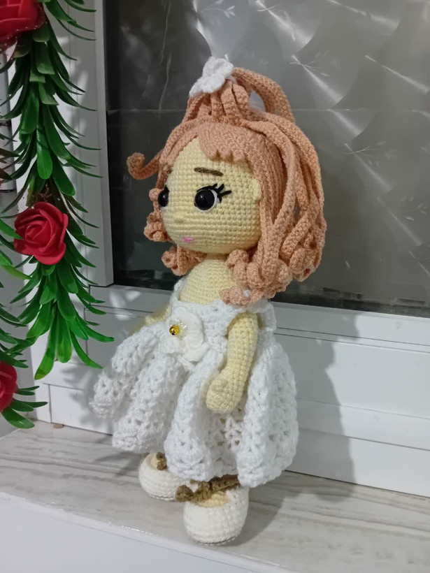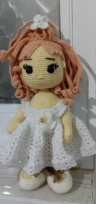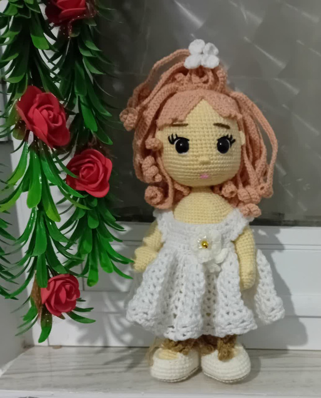 عروسک بافتنی زیبای عروس هم به عنوان دکوری روی میز آرایش عروس خانمها مناسب هم به عنوان هدیه به کودکان دلبندتان