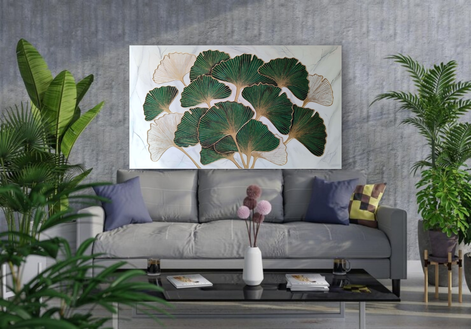 به صورت برجسته اجرا شده و بسیار شکیل هست در رنگهای سبز و طلایی و سفید و زمینه حالت مر مر اجرا شده این طیف رنگی بسیار زیبا و آرامش بخش هست ، به فضا انرژی مثبت منتقل می کنه و هر کسی با دیدن این تابلو علاوه بر حس زیبایی حس آرامش میگیرد.