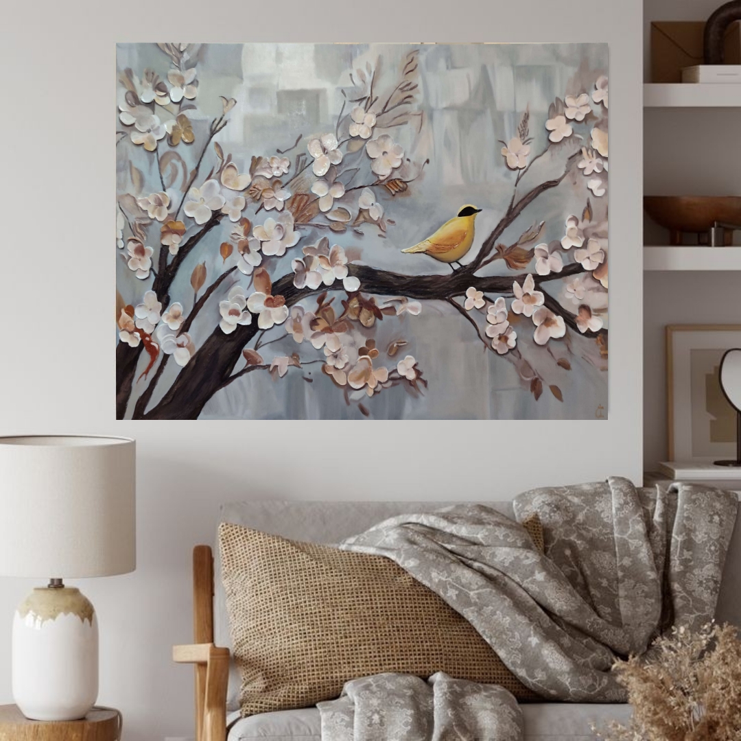 تابلوی درخت و پرنده در سایز ۷۰ در ۱۰۰ اجرا شده