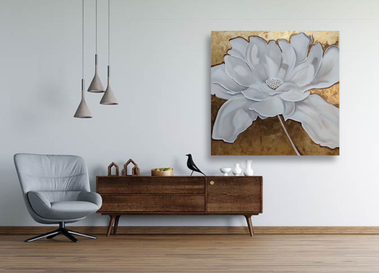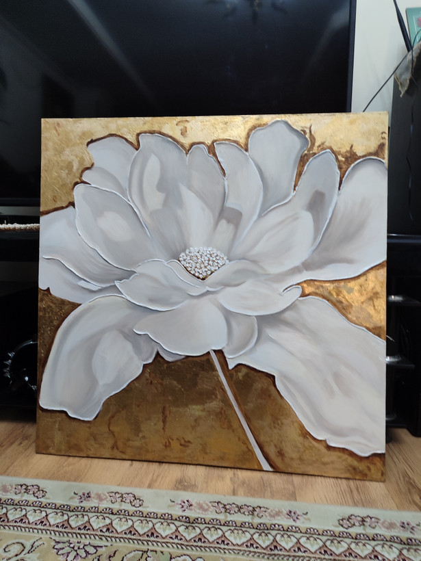 این تابلوی زیبا به خاطر زمینه ی طلایی جذابیت خاصی دارد و چون رنگهای استفاده شده خنثی هستند به راحتی با هر تم دکوراسیون هماهنگ می شود.